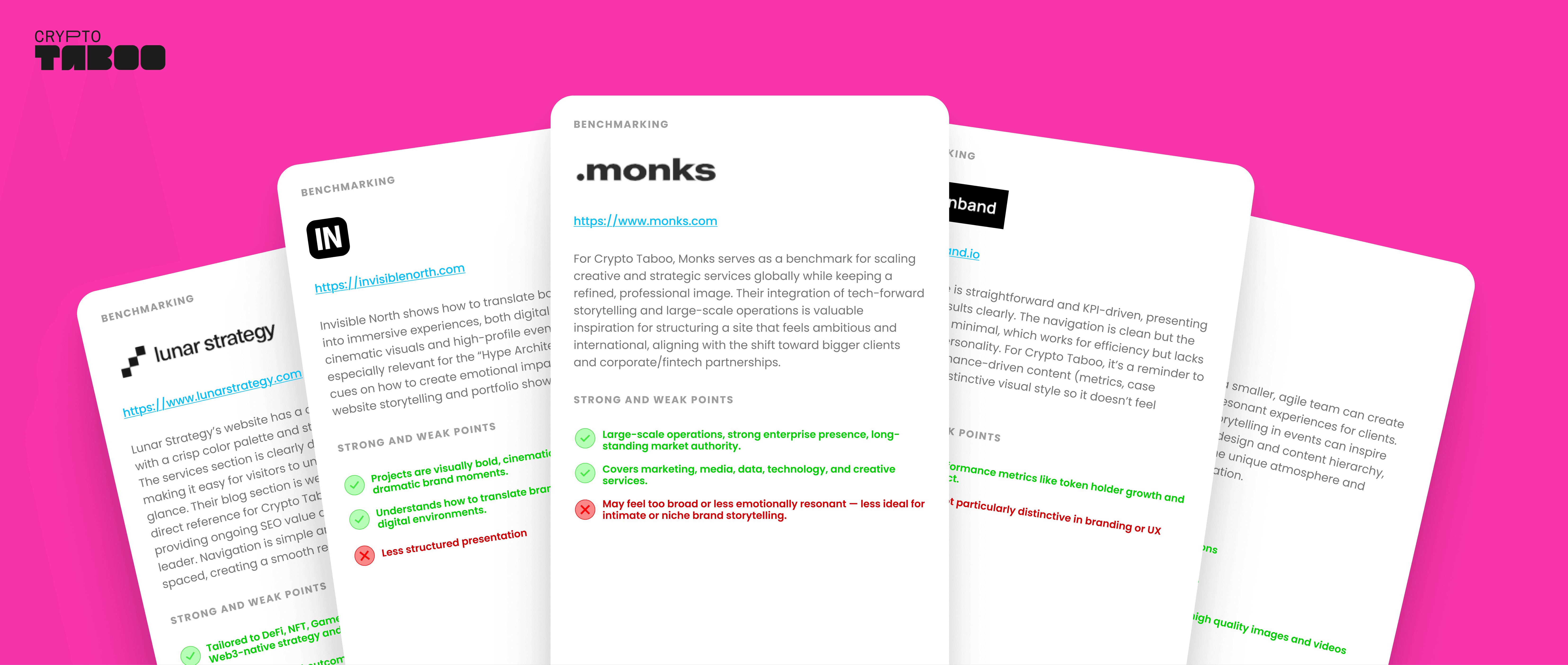 Crypto Taboo is a creative agency that designs and produces high-impact digital campaigns and real-world events for crypto, fintech and finance brands. It shifted from social media strategy to event production to match market demand.